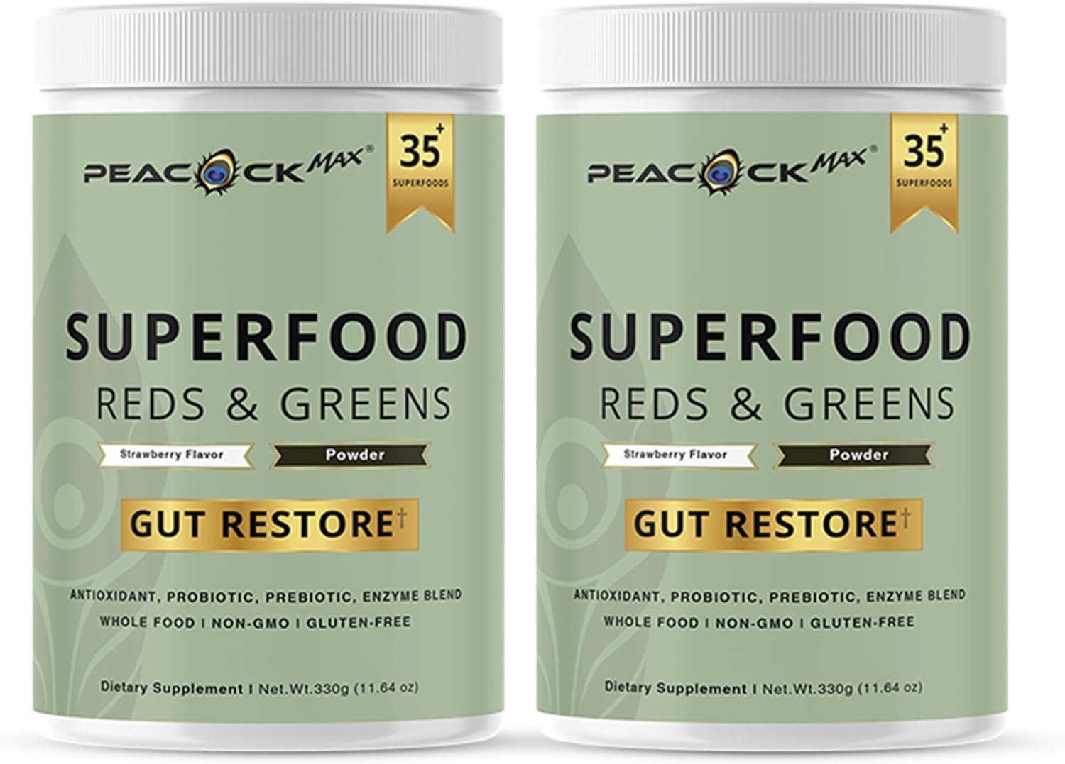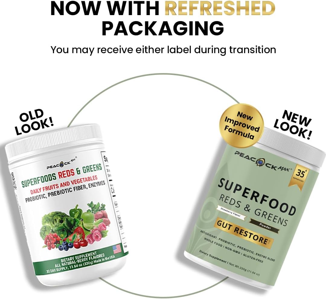 Superfood Reds & Greens Powder – 11.64 oz (Pack of 2), Super Greens & Reds Blend with Prebiotics, Probiotics & Plant-Based Ingredients, Vegan, Non-GMO