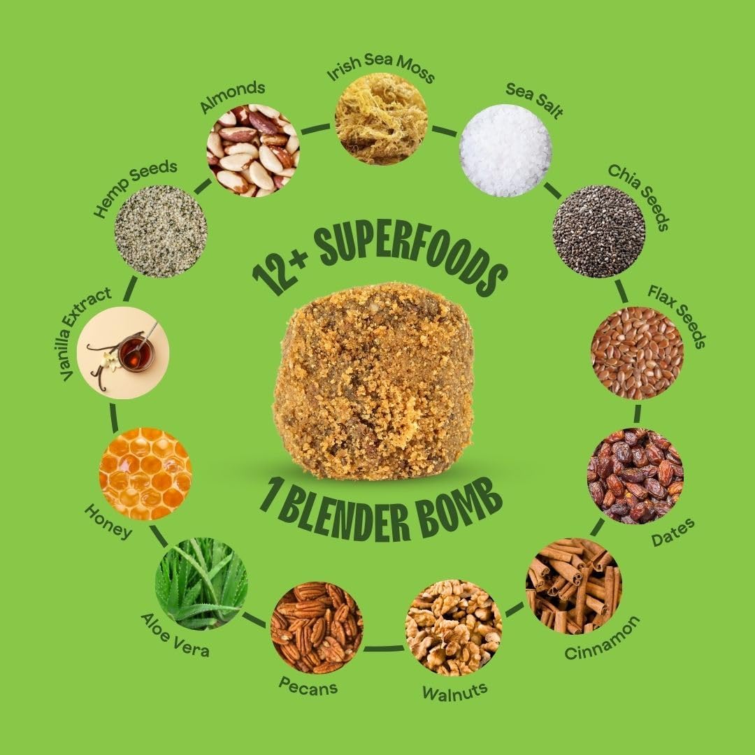 The Bomb Co. Blender Bomb, Glow Getter, Superfood Smoothie Supplement, Smoothie Mix with Flax, Hemp, Irish Sea Moss, & Amino Acids for Hair & Skin Support, Gluten Free, High Fiber, 10 Servings