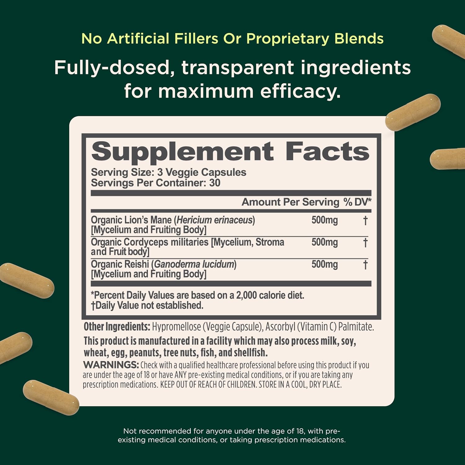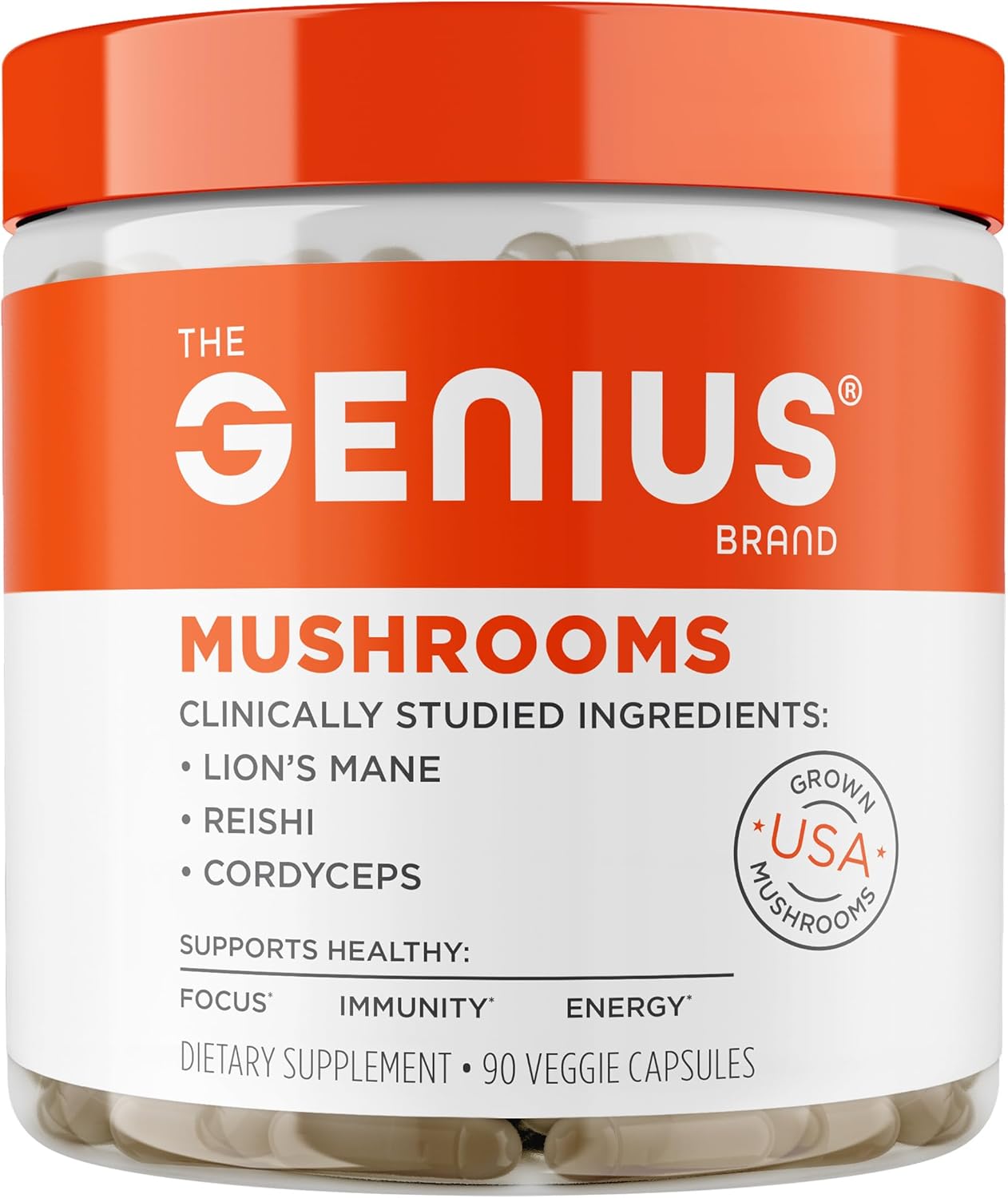 The Genius Brand Genius Mushrooms – Plant-Based Supplement for Immune, Focus & Energy Support – Lion’s Mane, Cordyceps & Reishi – Organic & Non-GMO – 90 Veggie Capsules