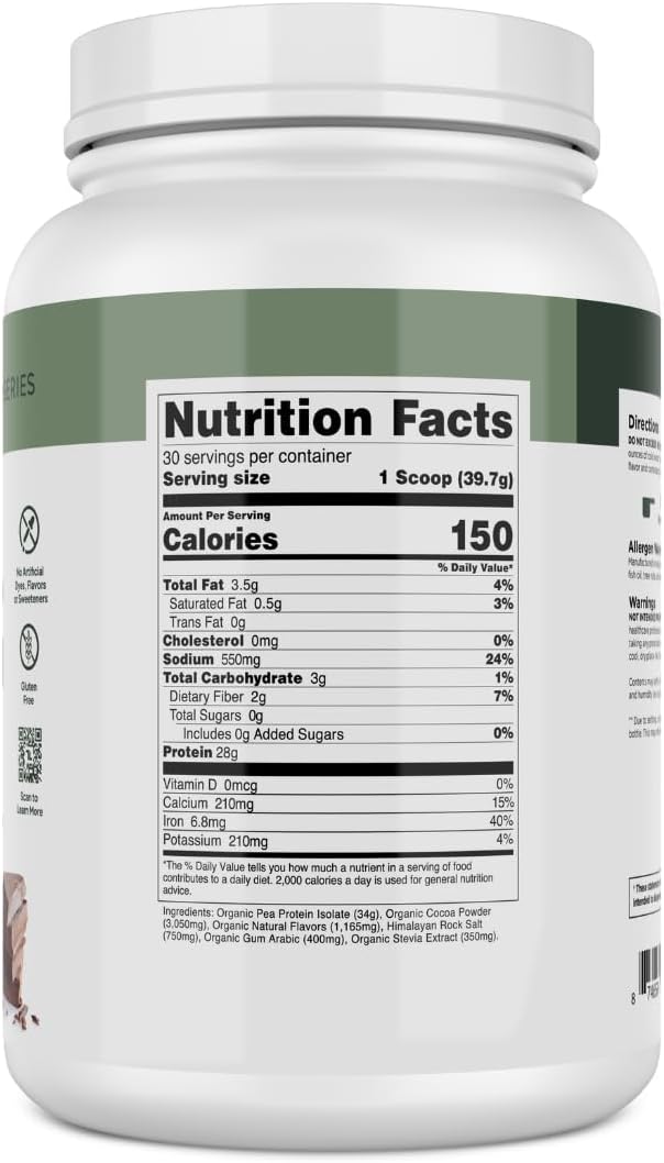Transparent Labs 100% Pea Protein Powder – 28g Organic Plant Protein per Serving, Clean Pea Isolate Powder, USDA Organic, Vegan, Gluten-Free, Sugar-Free, Non-GMO – 30 Servings, Chocolate