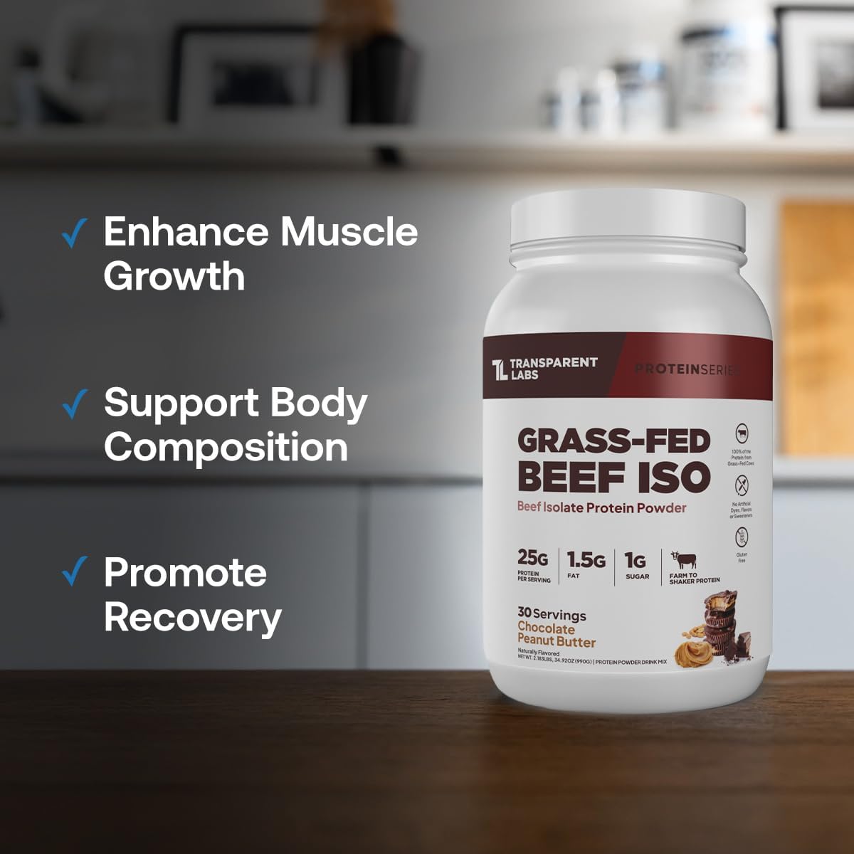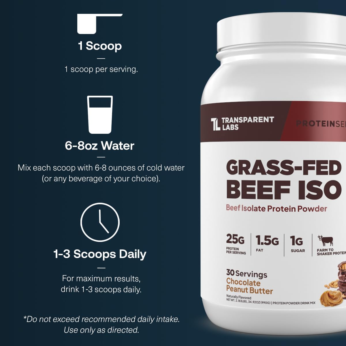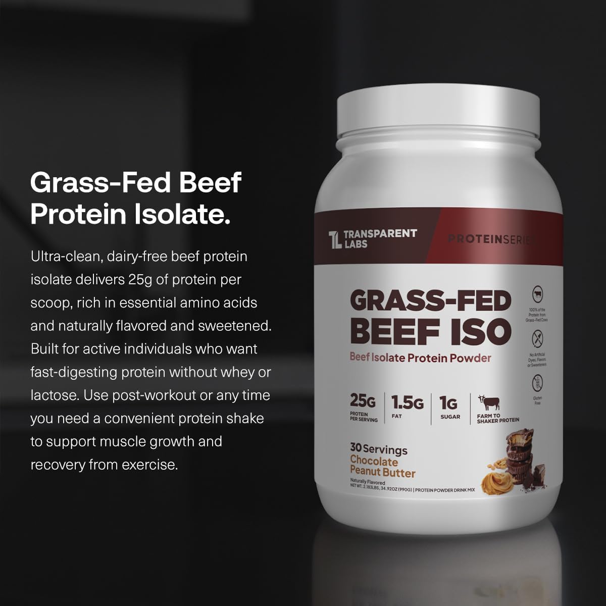 Transparent Labs Grass-Fed Beef Isolate Protein Powder – Naturally Flavored, Dairy-Free Protein with 25g of Protein per Serving for Increased Recovery & Strength – 30 Servings, Chocolate Peanut Butter
