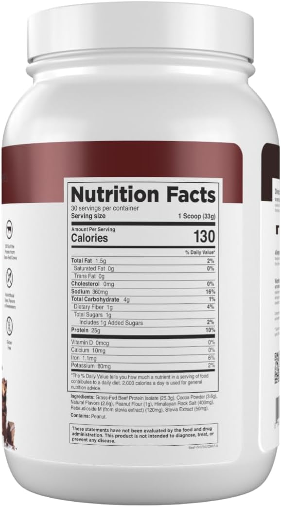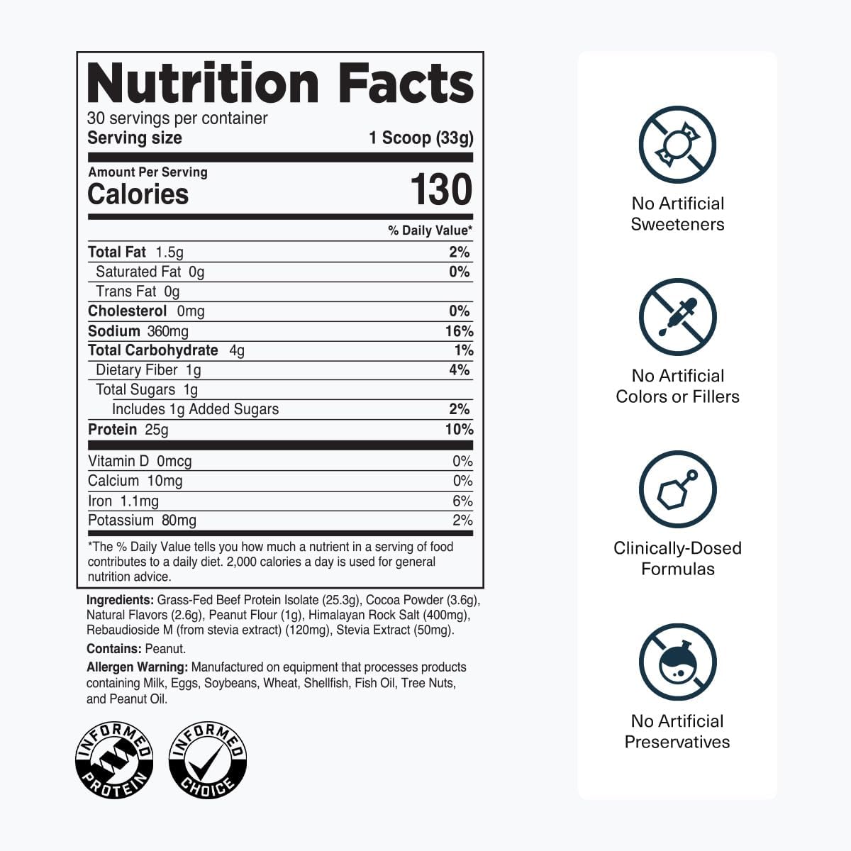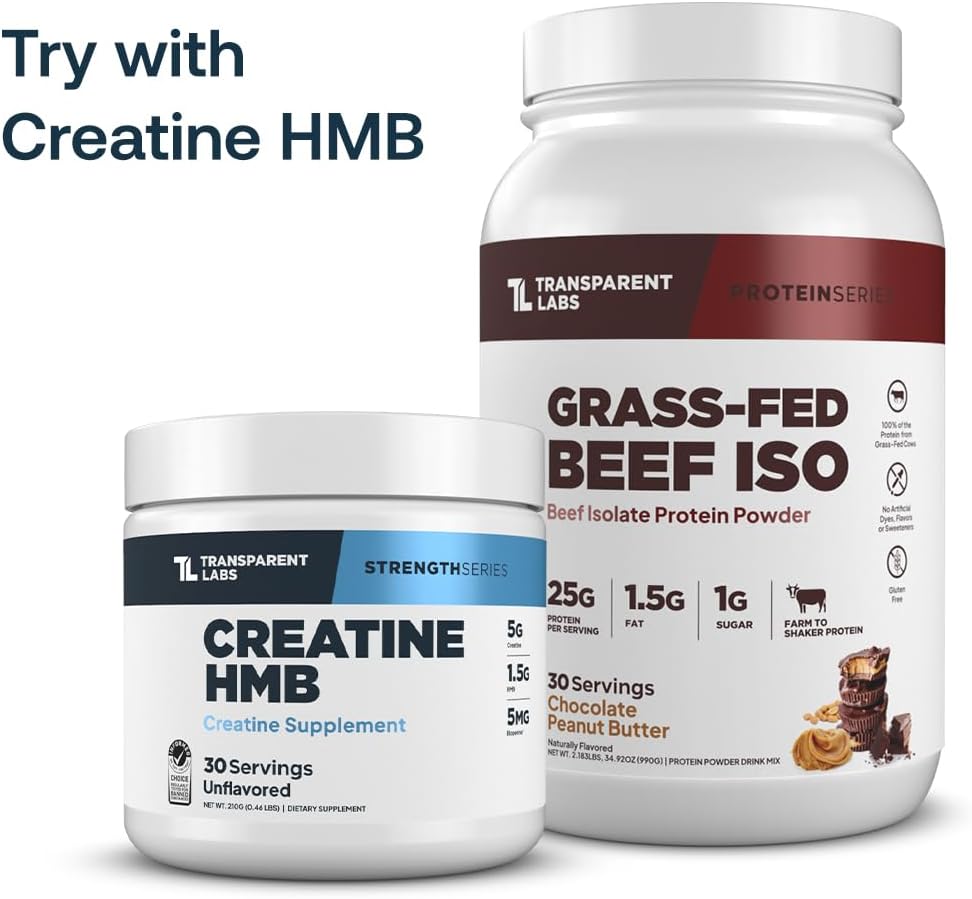 Transparent Labs Grass-Fed Beef Isolate Protein Powder – Naturally Flavored, Dairy-Free Protein with 25g of Protein per Serving for Increased Recovery & Strength – 30 Servings, Chocolate Peanut Butter
