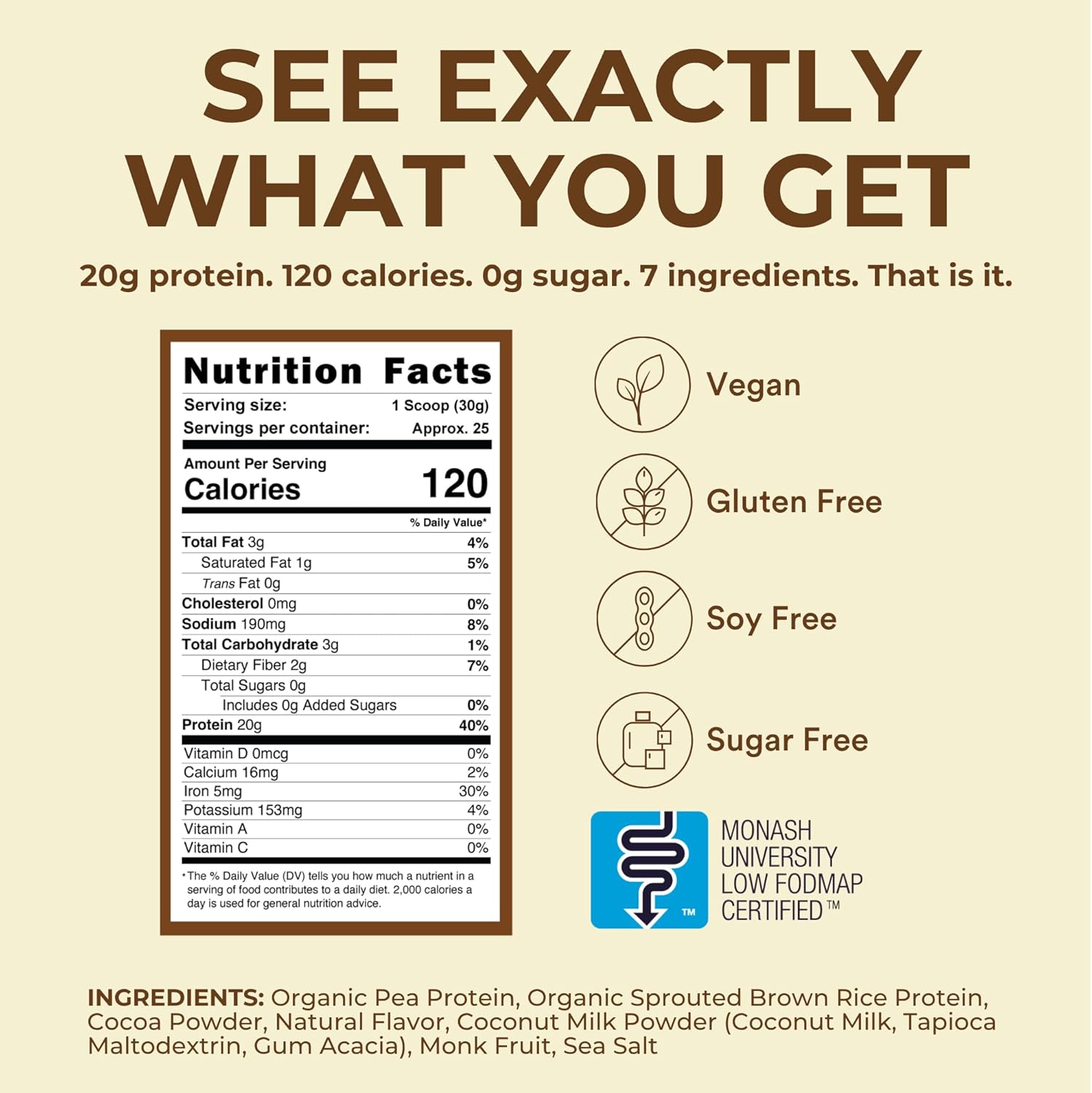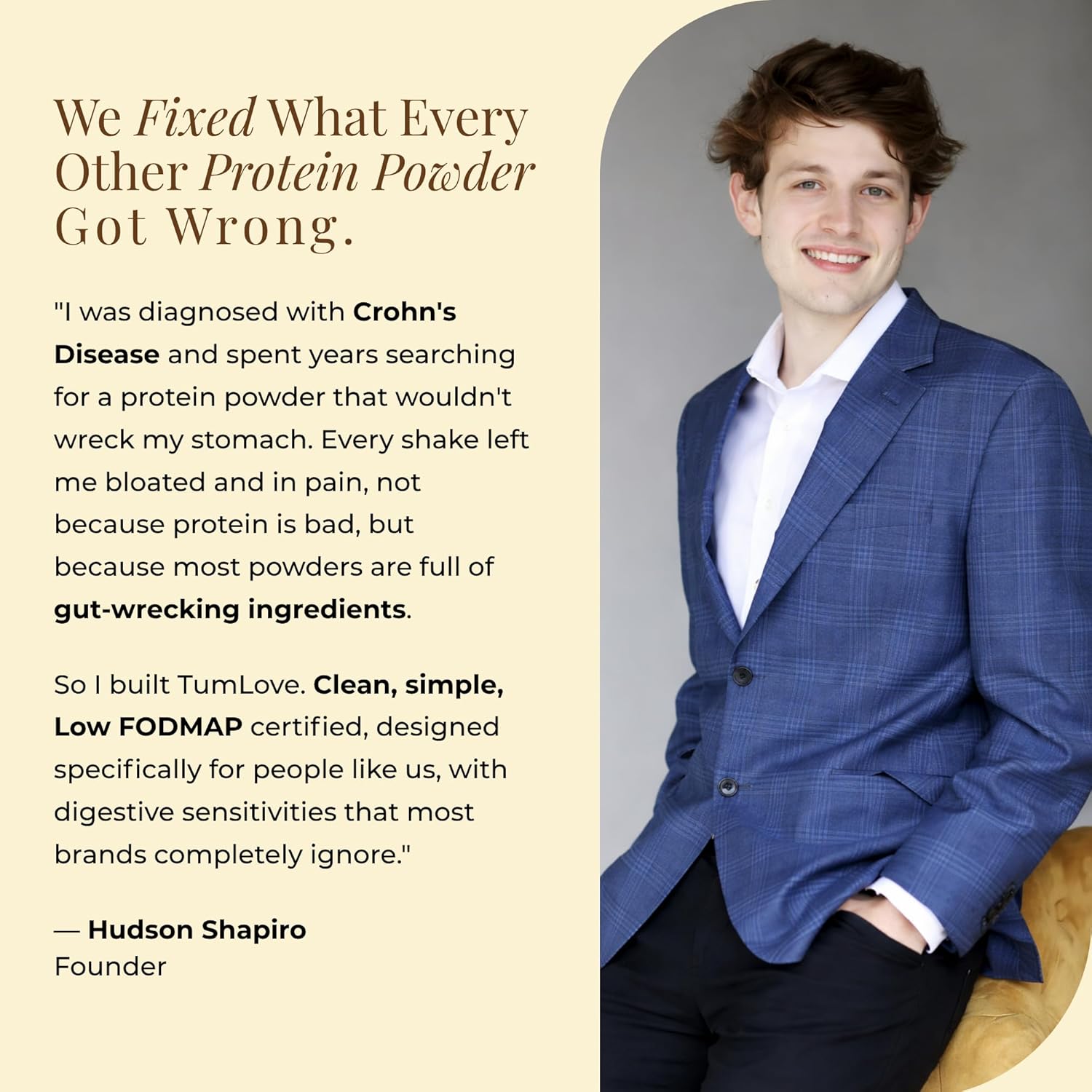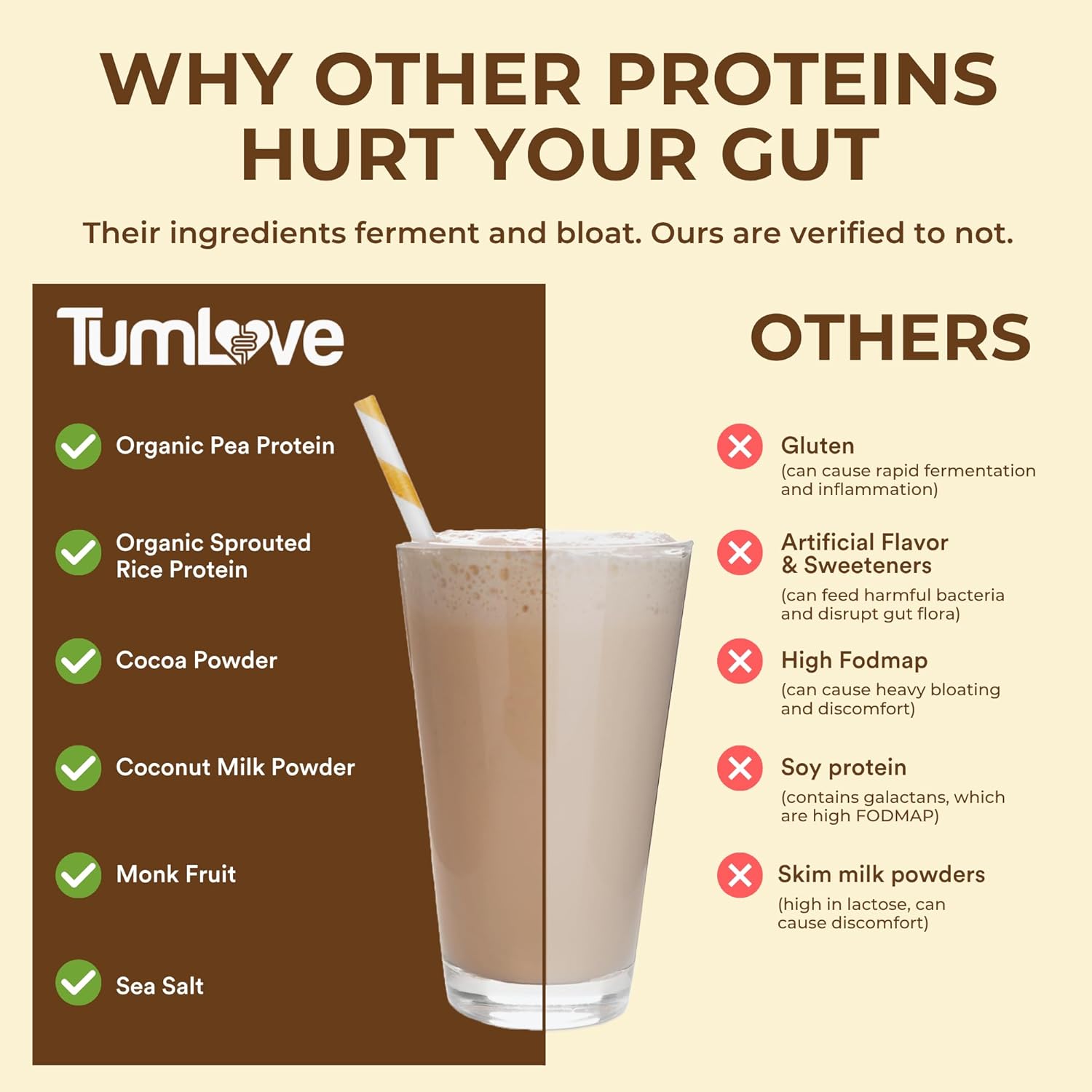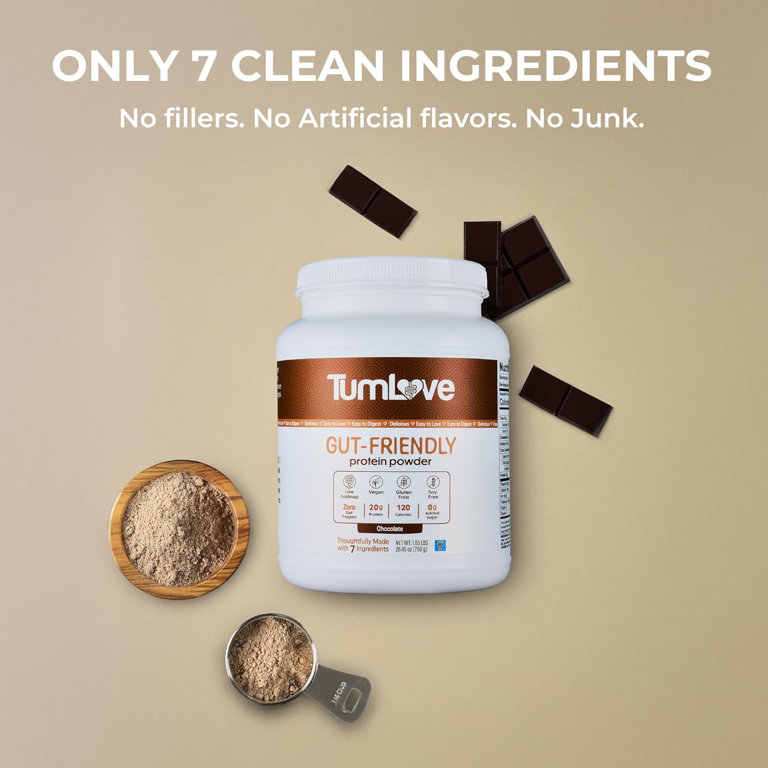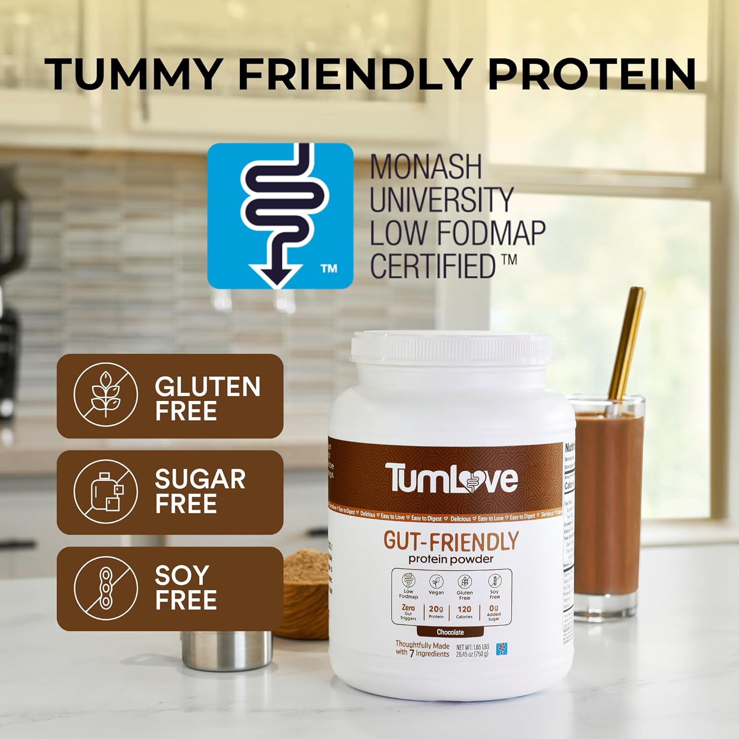TumLove Vegan Protein Powder – Low FODMAP Certified, Gluten-Free, Dairy-Free, Soy-Free, 100% Gut-Friendly & Non-Bloating, Chocolate (25 Servings)