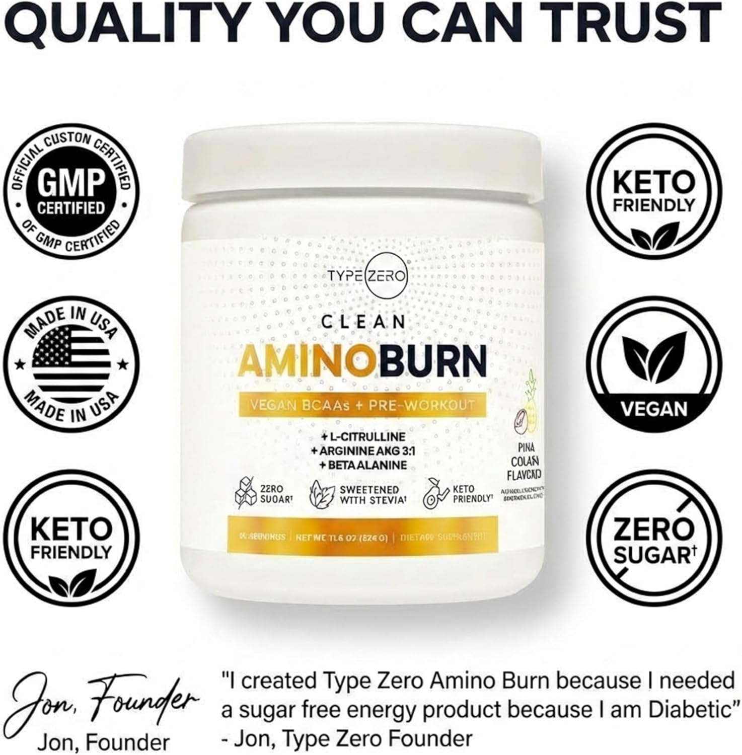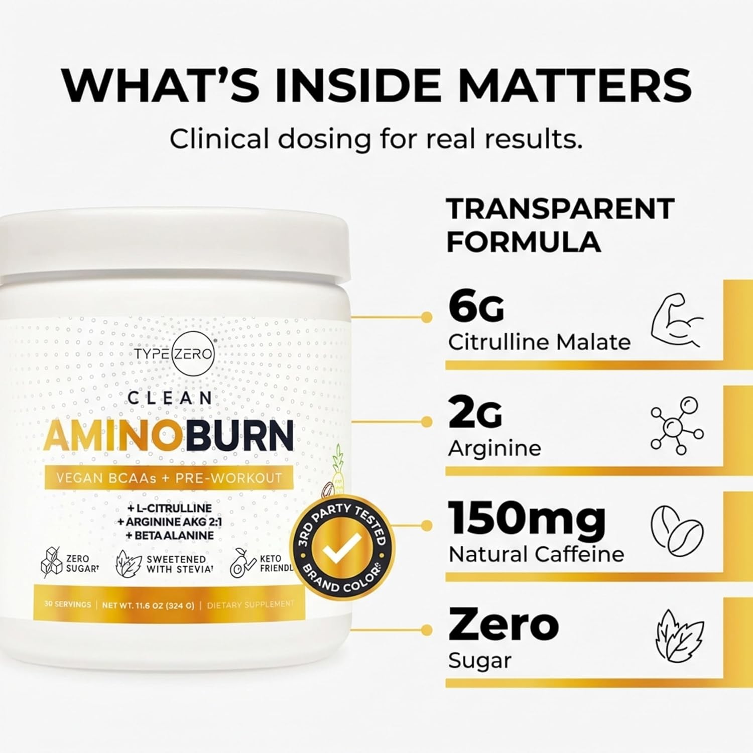 Type Zero Amino Burn Vegan BCAAs + Pre-Workout (Pina Colada Flavored)