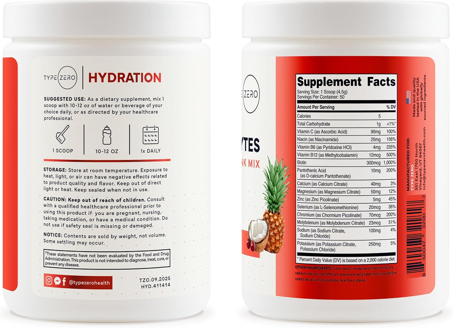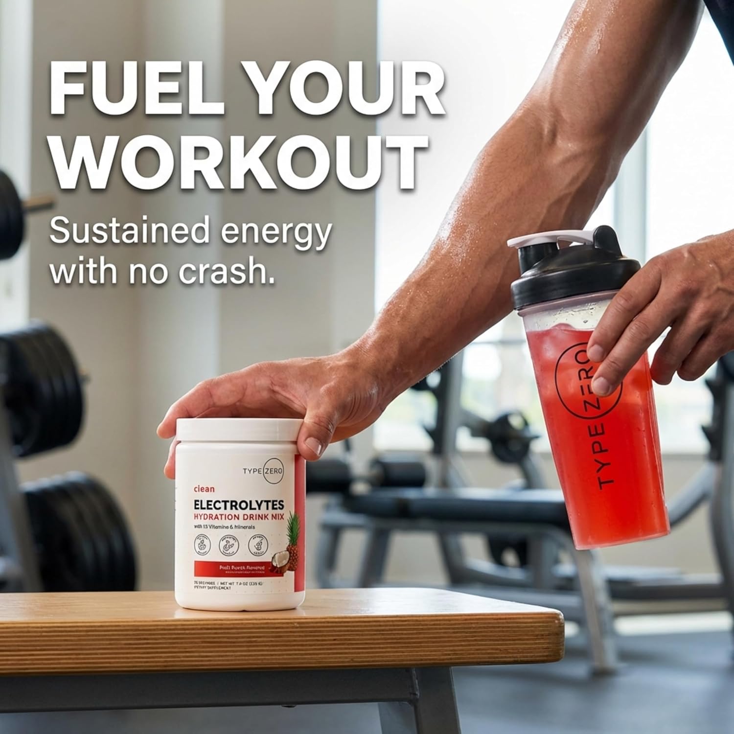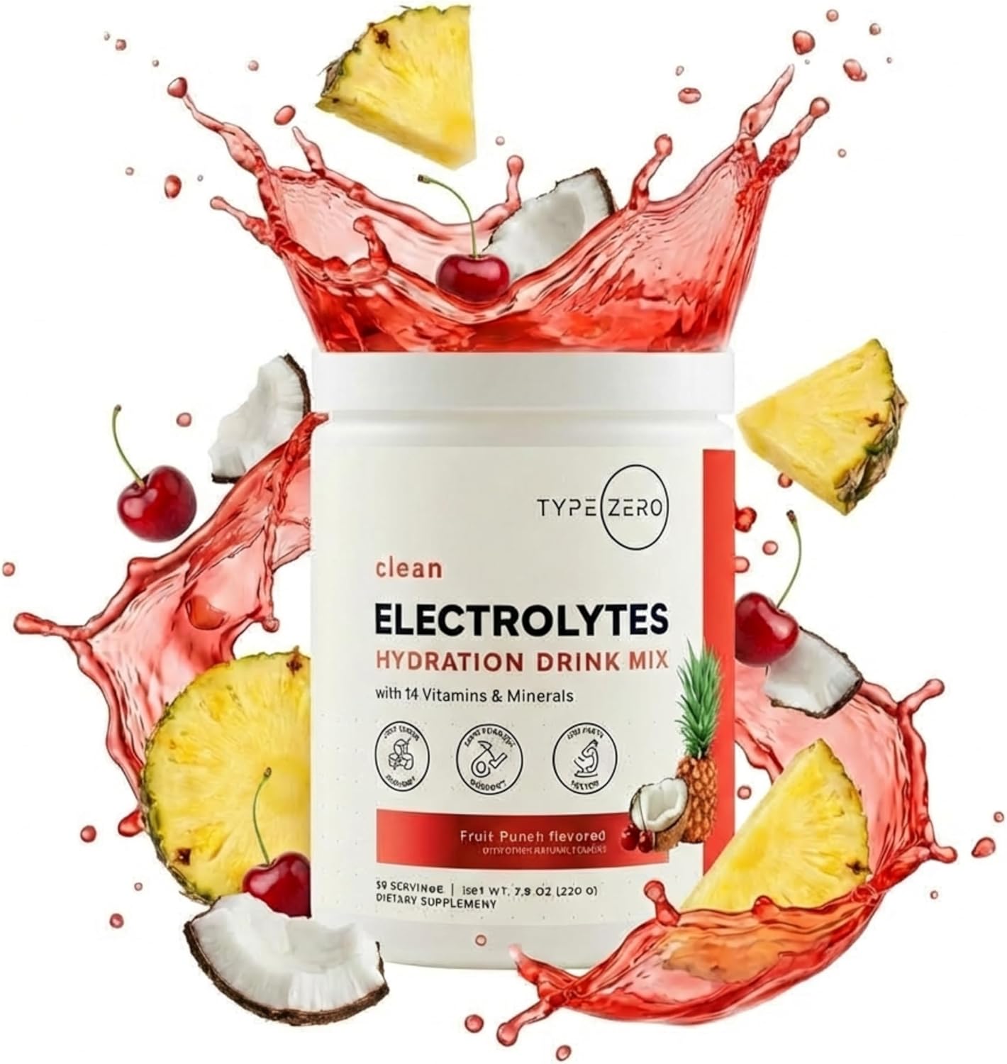 Type Zero Clean Electrolytes Hydration Powder Drink Mix + 14 Essential Vitamins & Minerals – Sugar Free, Zero Artificial Ingredients – Fruit Punch, 50 Servings