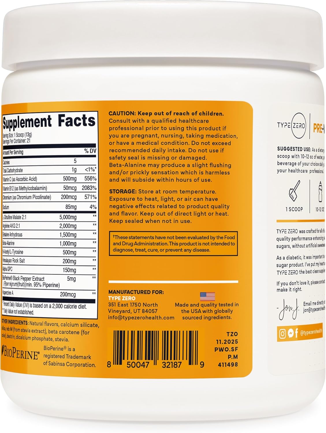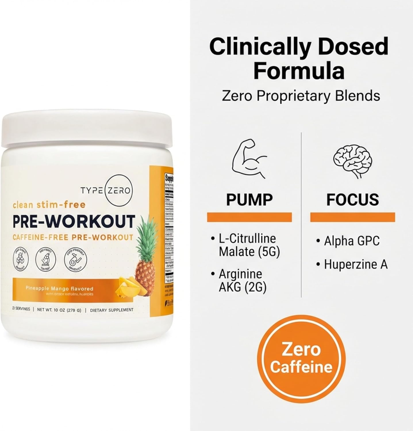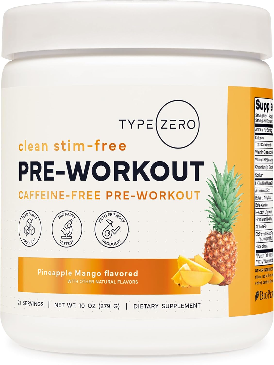 Type Zero Clean Stim Free Pre Workout Powder + Nitric Oxide Booster with L-Citrulline Malate, Arginine AKG, Beta Alanine – Caffeine & Stimulant Free – Pineapple Mango Flavor, 21 Servings