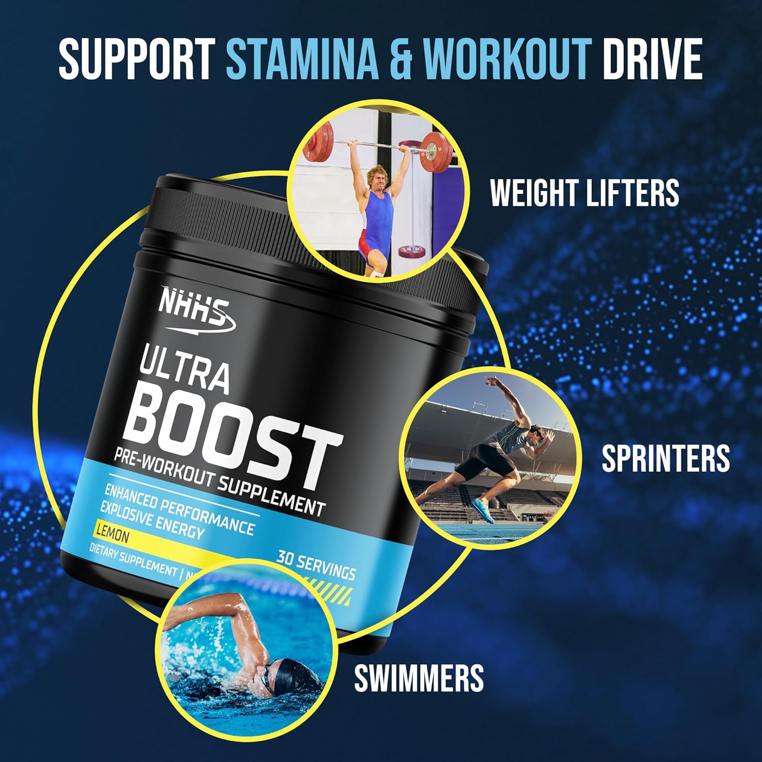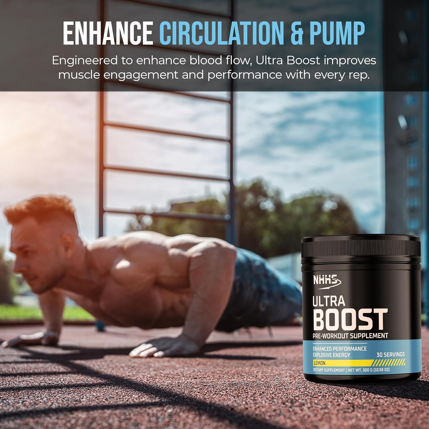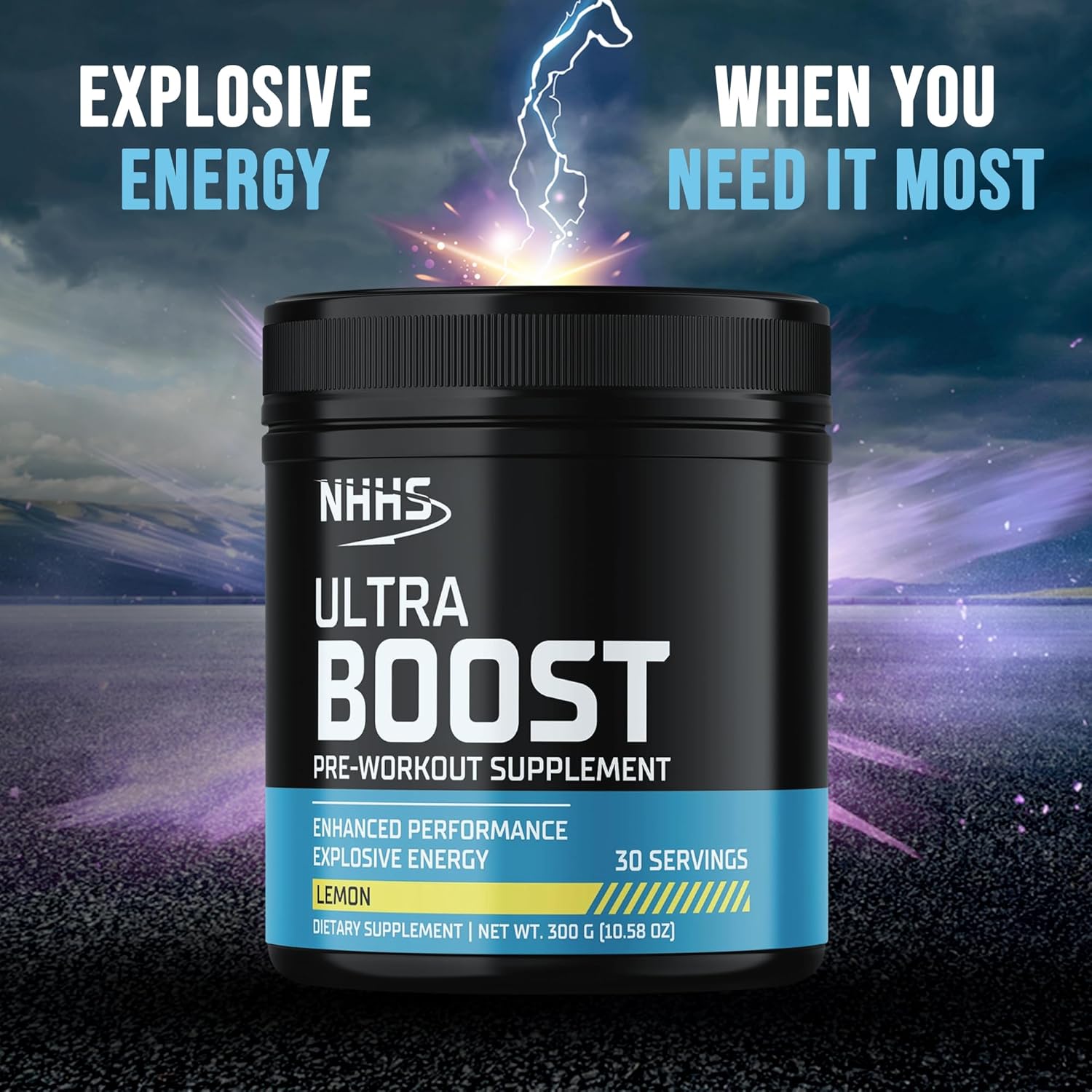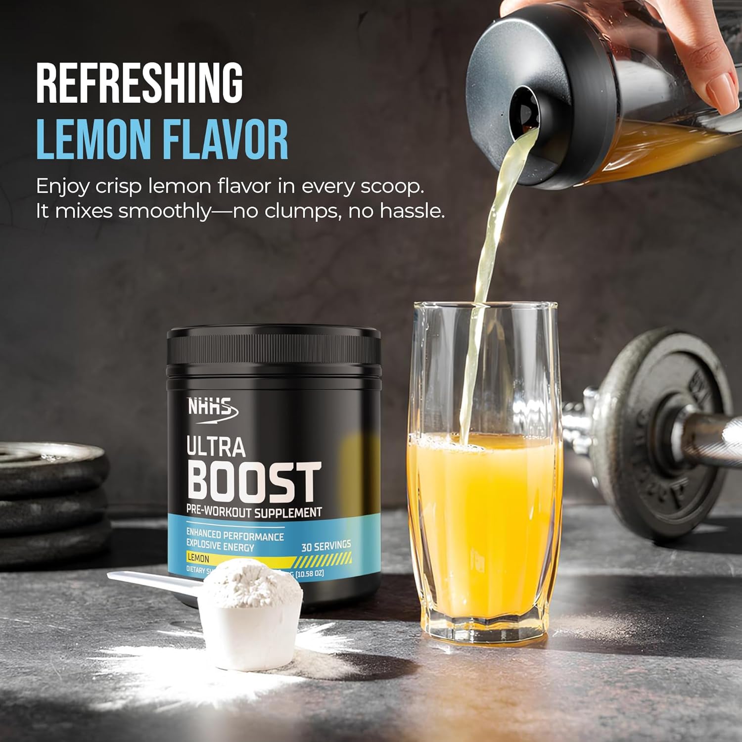 Ultra Boost Pre-Workout Powder – Explosive Energy & Performance Support | Lemon Flavor, 30 Servings, 300 Grams – Vegan, Gluten-Free, Non-GMO, No Additives – Made in USA
