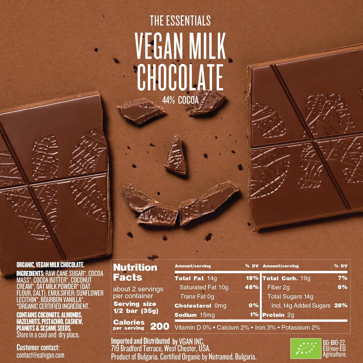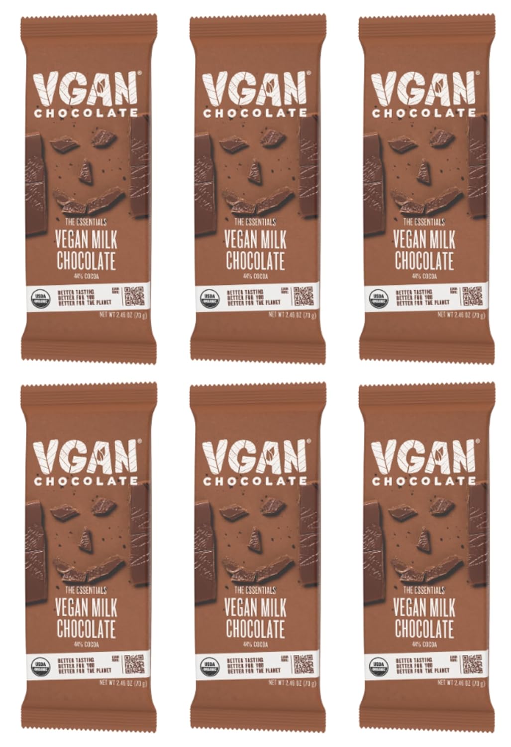 VGAN Vegan Chocolate Bars, Gluten Free Snacks, Plant Based, Soy and Dairy Free, Organic Ingredients, Cruelty Free, Kosher, and Non GMO, Milk Chocolates, 6 Pack