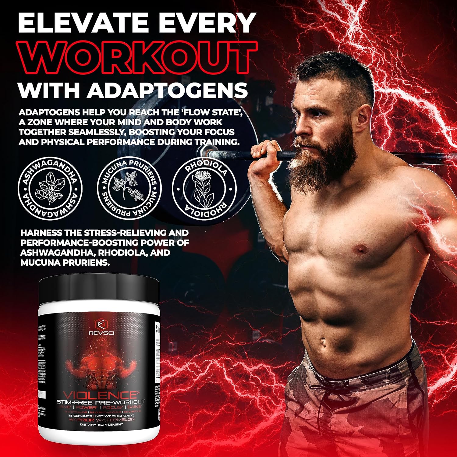 VIOLENCE Stim Free Pre Workout Powder by REVSCI, Precision Dosed Non Stim Preworkout Pump Pre Workout Caffeine Free Pre Workout Powder, Pump Supplement & Stimulant Free Nitric, Watermelon, 25 Servings